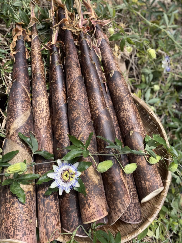 今日は裏山でとれた。新鮮な真竹の販売です!