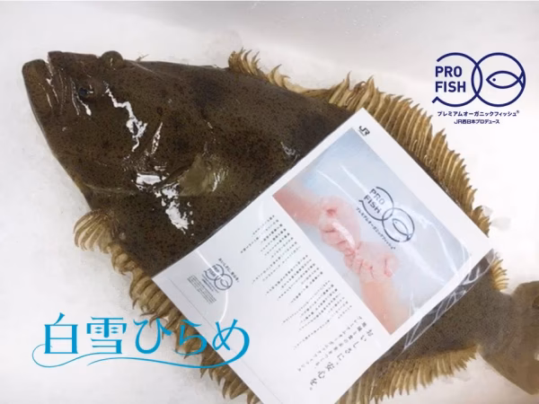 ヒラメは雪のように透き通った綺麗な白身であり、寄生虫が付きにくくなるという養殖プロセスから箱入り娘のように大切に育てたこと、またひらひら舞い踊るように泳ぐ様を「お姫ひめ様」に見立て、「白雪ひらめ」と名付けました。なお、「白雪ひらめ」はJR西日本の認証ブランド「PROFISH(プレミアムオーガニックフィッシュ)」の1つです。