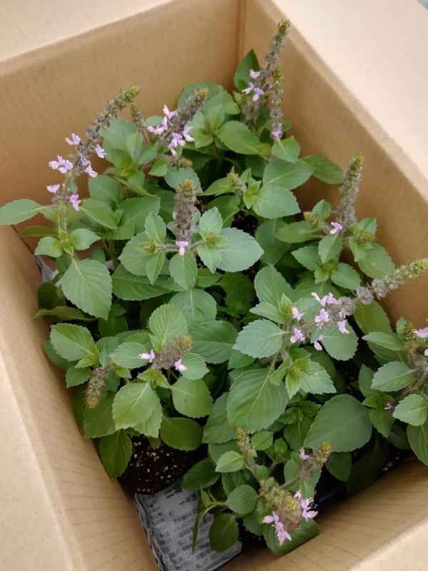 トロピカルな甘い香りの花をつけるバジルです。