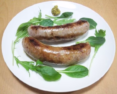 原材料:豚もも肉、豚腸、ニンニク、燻煙塩、セージ、オレガノ、コショウ、酢