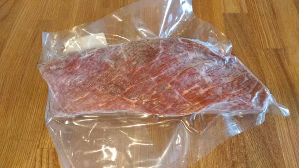 冷凍状態でお送りします。ボールなどに水をためて袋ごと入れて解凍するのが、ドリップが出にくく早く解凍できます。