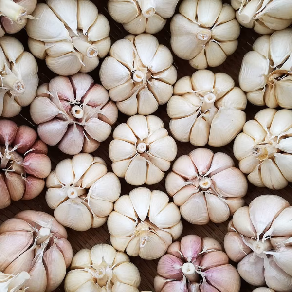 備考:カビやすいのでご注意下さい。紫色の皮のものが混じっていますが、地中の鉄分とにんにくの成分が反応したためで、病気ではありませんので、食べても問題ありません。