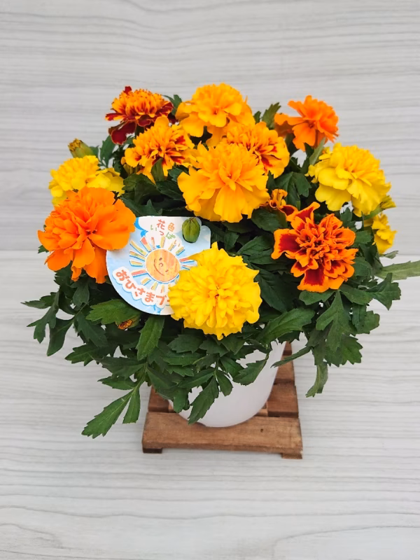 これからの夏にぴったりなマリーゴールドをブーケのように仕立てました。