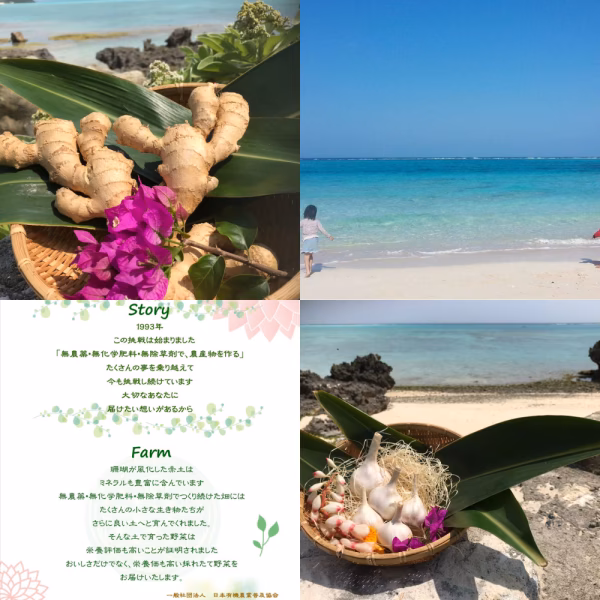 ▼自己紹介 南の島与論島にて、1993年より無農薬無化学肥料で栽培を始め、有機農業を営んでおります。大切なあなたに安心安全、美味しいを届けたい!そんな想いを込めて、今日も作り続けます(^ ^) <にんにく> ▼商品概要 免疫力の元とのなるアリシンが多く含まれています。冬の時期も生育が進むため、4月から収穫できます。また、牡蠣殻と海のミネラルを肥料として施しているので常温で長持ちします。 ▼品種・味の特徴・食べ方 島ニンニク 炒め物、揚げ物、擦り下ろし、どんな料理にも合います。 香り高くしっかりした味が、更に料理を引き立てます。 ▼数量、分量の目安 200g(10個前後) <しょうが> ▼商品概要 本土のしょうがは、霜が降りると生育が難しくなる為、その前に収穫します。しかし、与論の場合は暖かい気候のため、霜が降りないので、葉が枯れるまで土の中で育てることが出来ます。その為完熟しょうがとも呼んでいます。 ▼品種・味の特徴・食べ方 炒め物、揚げ物、擦り下ろし、どんな料理にも合います。 香り高くしっかりした味が、更に料理を引き立てます。 ▼数量、分量の目安 200g ▼栽培/生産方法、こだわり 輪作、天敵温存植物、粗大有機物(ソルゴー、ススキなど)と太陽熱による土作りによって、有機JASで許可のある農薬も一切使用せず、農産物を作り続けています。また、与論の土は珊瑚が風化してできた赤土で​ミネラルを多く含んでいます。 ▼注文に際しての注意点(配送方法や納期指定など) 発送までに1〜3日要します。発送してから到着までに約2〜3日程かかります。