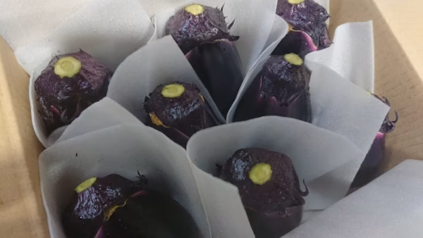 ▼商品概要 露地栽培で太陽の光いっぱい浴びた泉州水なすです。形が不揃い、擦れキズ有り、新鮮さは変わりません! ▼品種・味の特徴・食べ方 泉州水なす、あくが少なく皮も柔らかいので1番の調理方法は、糠漬けや浅漬けです。生のまま薄切りスライスにオリーブオイル&お塩で簡単に。縦にくし切りして沸騰させた鍋に油を適量入れそこに切った水なすを入れ茹でます。(色落ち防げます)軽く絞ってゴマ和えに。糠漬けで古漬けになったものは、「じゃこごうこ」にリメイク!じゃこごうことは古漬け水なすと、えびじゃこを煮たものです。是非お試しを!! ▼数量、分量の目安 6本~8本