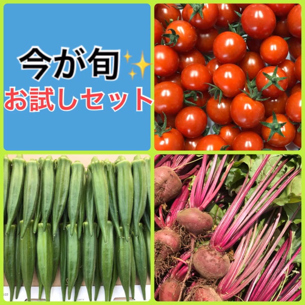 〝少しずつ〟ですが、ミニトマトとオクラはスーパーで売っているサイズの2袋分くらいあるので しっかり味わって頂ける量にしました!