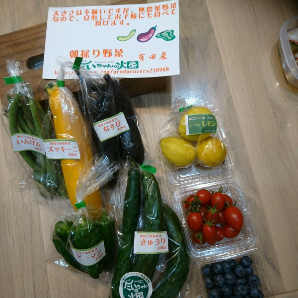 和歌山県の有田みかんで有名な気候のいい場所で収穫したお野菜です。大きさは不揃いですが、とっても味が濃いです。子供にも安心して食べて貰えます。
