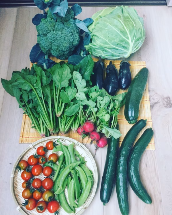 キャベツ(BT剤使用)、ブロッコリー、ホウレン草、ナス、ピーマン、キュウリ、ミニトマト、スナップエンドウ、ズッキーニ、他。