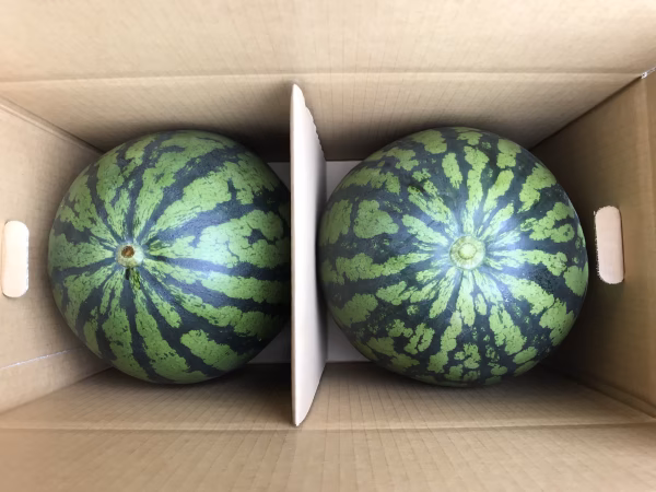 当農園のスイカは一株に一果実の“一果採り”なので どれも大きめです。品種は“シャリ感”とさわやかな甘さの『紅大将』
