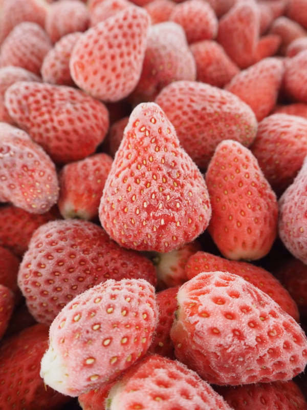 ・-40℃で急速冷凍します。いちごの細胞を破壊してしまう温度帯を一気に通過することで、鮮度をそのままで冷凍することができます。