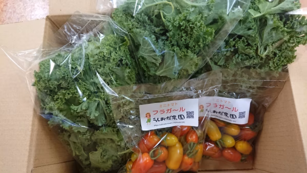 うっちゃんが初めて育てたミニトマトのフラガールと千切ったケールのコラボセットです。