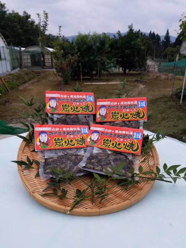 ▼自己紹介 本来、鶏は広々とした運動場で走り回って遊んだり、草をついばんだり、土をかぶったりして一日中動き回る生き物です。 鶏らしさを失わず、美味しい餌と白砂ヶ尾冷泉から汲み上げる美味しい水、鶏のためなら365日何が出来るか…不器用ですが、 それを18年続けてきました。 新型コロナの影響で、事業所からの注文が 0になってしまいました。 田舎者で、このような形での販売に対して 心臓がドキドキしていますが、何事にも挑戦だという思いと全国の皆さんにみやざき地頭鶏の美味しさを知ってもらいたいという想いで、お送りしたいと思います。 ▼商品概要 みやざき地頭鶏炭火焼き真空パック。 ▼品種・味の特徴・食べ方 紙のパッケージを外して頂いて、そのままレンジで 加熱してください。 加熱時間(目安)500㍗→1分 600㍗→45秒 フライパンの場合、油はひかず開封して中身を出した炭火焼きを広げて温めてください。 ▼数量、分量の目安 1パック→120g ▼栽培/生産方法、こだわり 生後150日(5ヶ月)から出荷が義務付けられているため その5ヶ月間を鶏らしく精一杯生きてもらうための努力は 厭わない気持ちで、毎日鶏舎に向かいます。 安心安全、ストレスフリーな鶏に育ってもらうには 鶏舎の清潔性、運動場の広さ、清潔で美味しい白砂ヶ尾冷泉から汲み上げる水、カロリー計算されている餌 それを徹底しております。 ▼注文に際しての注意点(配送方法や納期指定など) クール宅急便(冷蔵)にて配送となります。