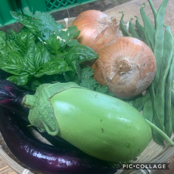 - 分量:なすx5本、ズッキーニ x丸2個 普通の2本 長ネギx5本 玉ねぎx5個 葉物x500g ミニトマト200g オクラx10本、モロヘイヤx100g など。 この他に旬なものを入れていきます。天気・成育次第で内容が変わりますので、ご了承下さい。