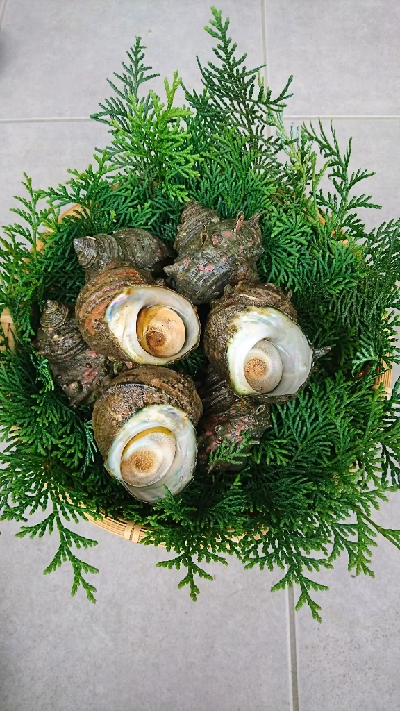 素潜りをして採った天然サザエです。