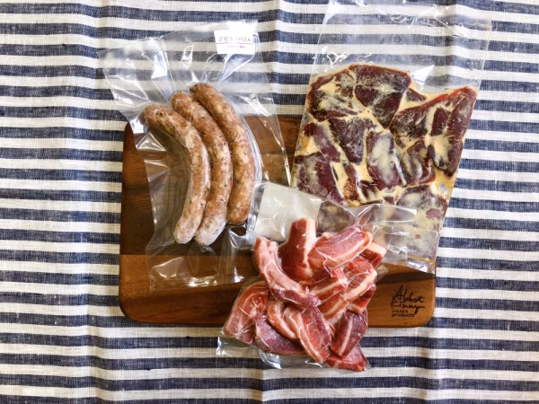 ○猪肉はスライスしてますので、袋から出してそのまま焼いてお楽しみください。