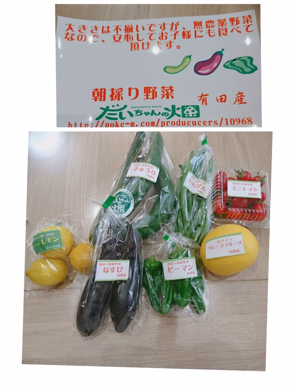 和歌山県の有田みかんで有名な気候のいい場所で収穫したお野菜です。大きさや形は不揃いですが、無農薬で化学肥料不使用で子供にも安心して食べて貰えます。新鮮な野菜は一味違います。