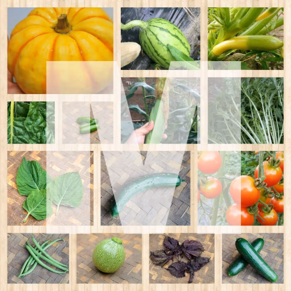 そのときどきの畑の状況によりますが、5〜8種類をセレクトしてお届けいたします。