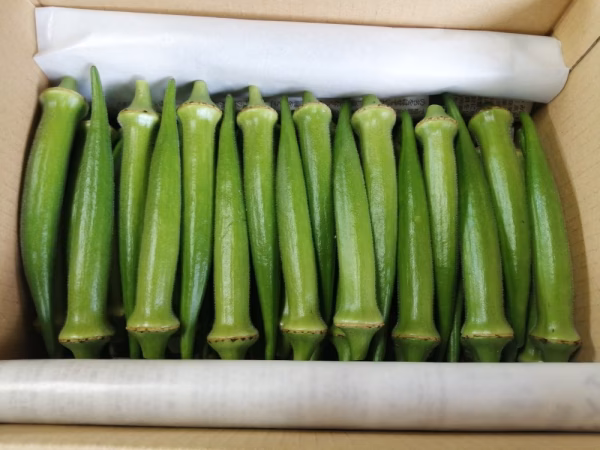 早朝に収穫したオクラをその日に発送。
