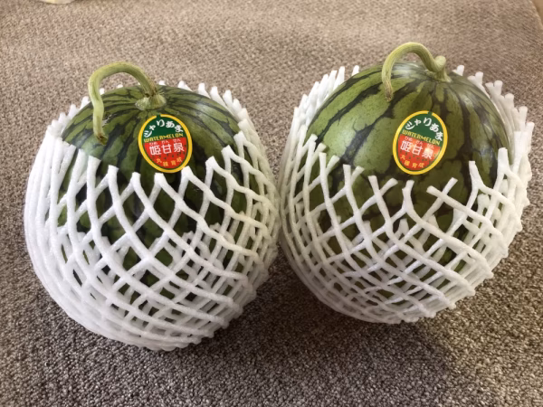 1玉1玉スイカの音を聞き、シャリ感と甘さが絶妙なタイミングで収穫します。
