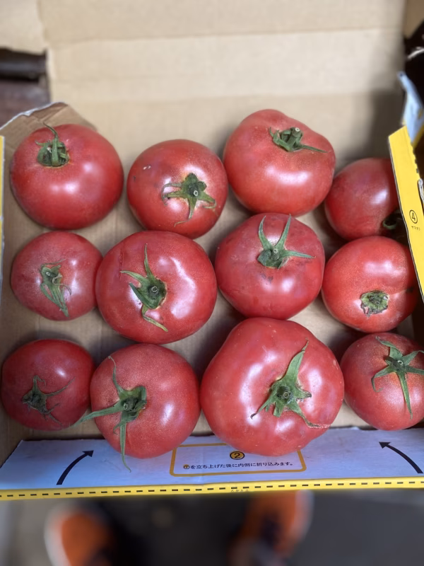 無農薬野菜 甘さはじけるトマトです! 60サイズのダンボールに、15いれさせていただきます。 当農園の野菜は、全て無農薬で作っています。 近くにあるこどもの国(皇太子さまのご誕生を記念されて建てられた建物)から肥料をいただいて、それだけで育てています。 安心安全をモットーに。