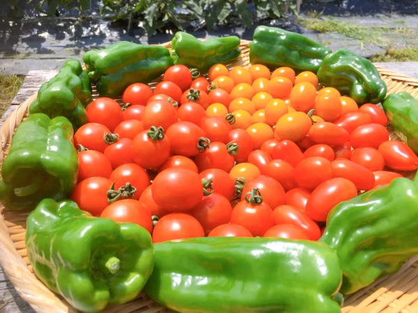 子ども達が、丸かじりできるように、農薬に頼らずお日様の力で育てています。見て、食べて、調理して、大人気です。