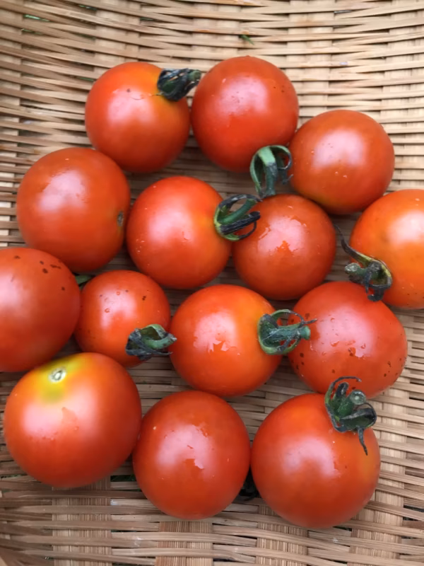 無農薬、無化学肥料で、子供にも安心して食べていただける方法で栽培したトマトです。米ぬかなどを発酵させて作った有機肥料であるボカシ肥料を使っておりますので、土にアミノ酸がたっぷり含まれており、うまみ成分が増したトマトです!