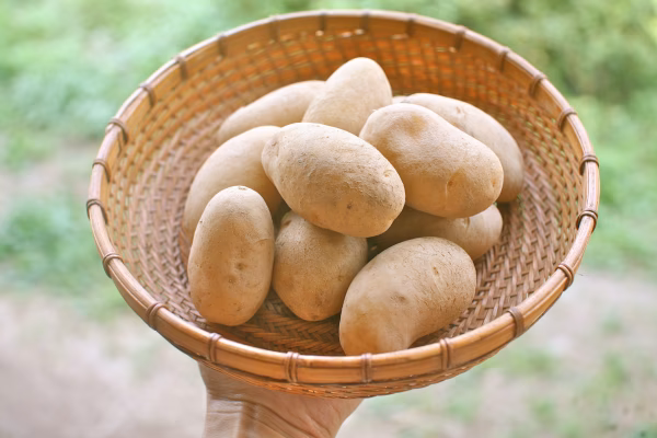 紙袋など通気のある状態で、冷暗所に保存。光が当たる場所では表面が緑色になり、食味が悪くなります。芽が出てきた場合は、取り除いて食べてください。芽の部分は食べないでください。強い毒性があります。