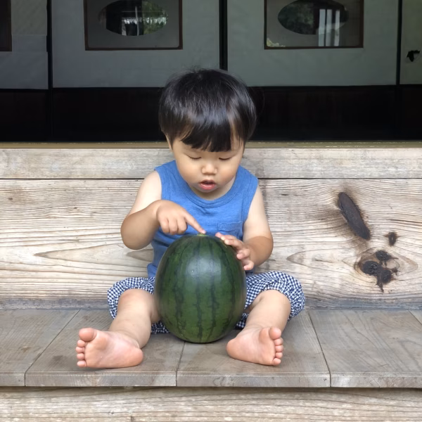長く伸びる蔓を丁寧に扱いながら、細かな手作業で育てました。夏の思い出のお供に、のぎ屋のスイカをぜひご賞味ください。