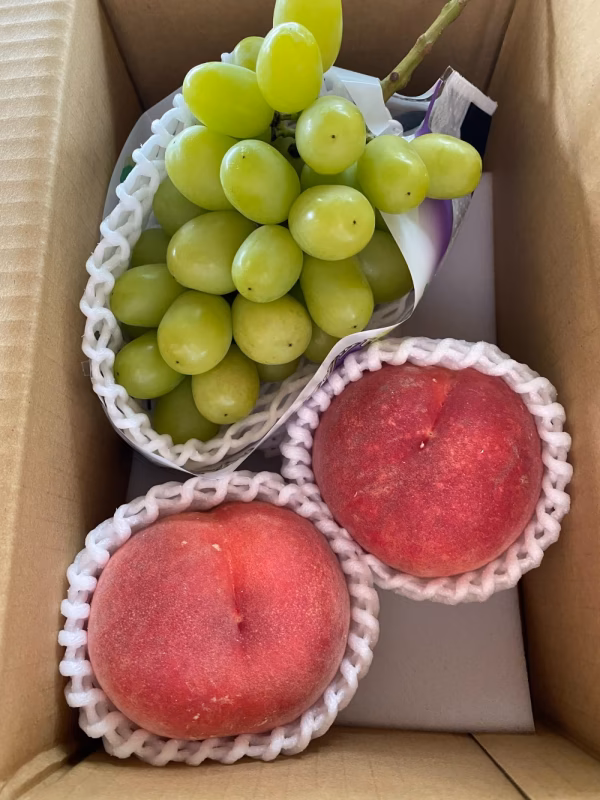 あすなろ園では6月中旬~9月上旬まで、 たくさんの桃の種類を生産しております。 全国のお客様へお届けさせて頂いております。 こちらの商品ページは 【桃・温室シャインマスカット】の詰め合わせ ご希望の多かった一人暮らしでも楽しめる!! 桃・シャインマスカットのセットになります。 桃は傷ありを詰め合わせすることでお値段を少しでもお手頃に なるようにさせて頂きました。 桃 2玉 シャインマスカット 1房(350g~450g) 長期のご不在などがある場合は購入時にお知らせください。