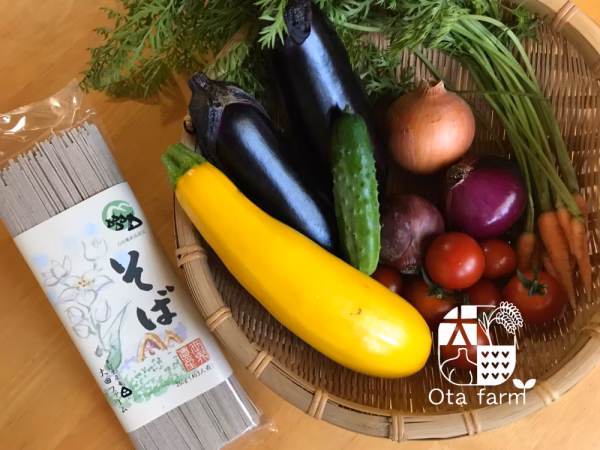 白川郷産そばの実の干しそばと旬のお野菜をたっぷり入れてお届けします。