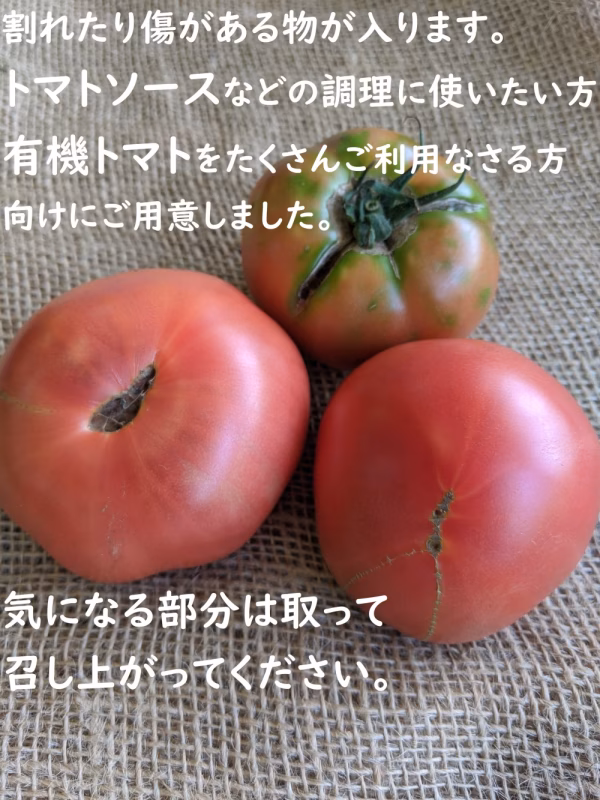 ちょっと割れていたり、チャックが入ったり、大きさが不揃いだったり、【訳あり】の有機トマトをお買得にしてお届けします!