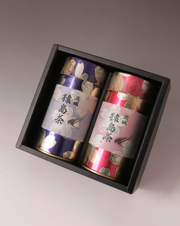 当店人気の和紅茶と高級猿島茶のティーバッグ2種類を茶缶に詰めました。