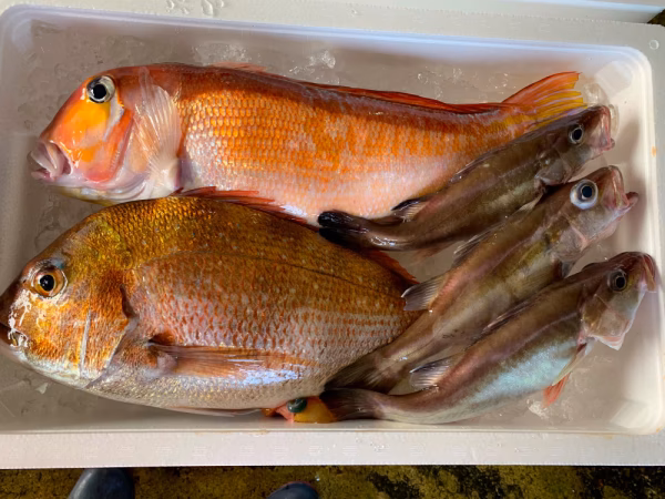 1キロUPの特大甘鯛と2キロ程度の天然真鯛