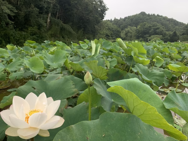 メダカやゲンゴロウ、カワセミ、カエルなど…沢山の生き物がいる環境の中で、自然のエネルギーをたっぷりもらって元気に育った蓮です。