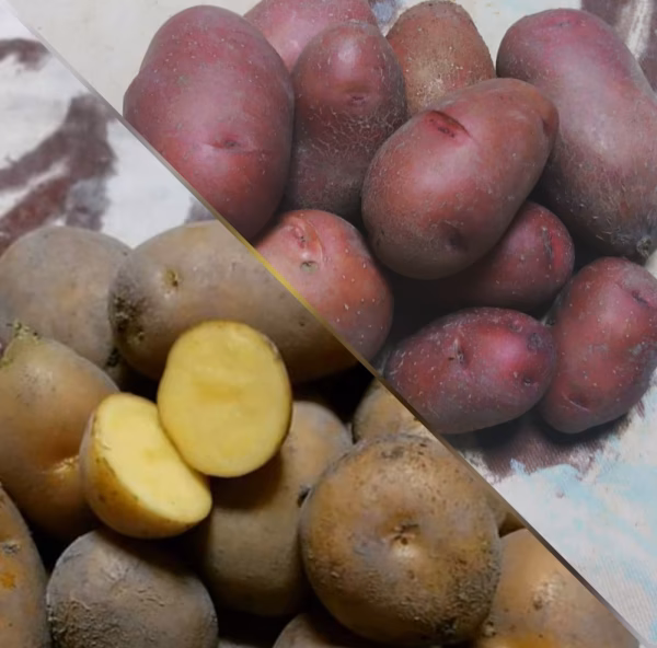 ほっくほく&もっちもちのインカのめざめと、しっとり&なめらかで皮が赤いアンデスレッド。味も色も舌ざわりも全然ちがう2種類のじゃがいもをセットでご用意しました。