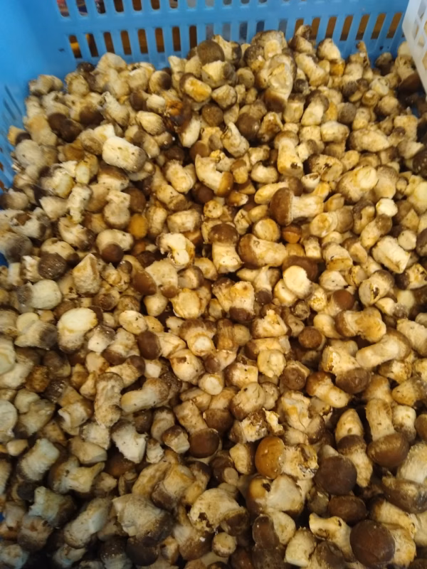 長野県御代田産 菌床椎茸です。  芽かきで出た椎茸の芽約1.7kg~1.8kgです。 60サイズダンボールが150gある為、合計1950~60gを目安に入れます。が、椎茸が呼吸をして水分が飛ぶ恐れがある為、到着時若干軽くなる可能性があります。 夏季期間中特別価格で出品します 直径1cm~2cmの小粒なので、普段より安く設定しています。 ✔国産おが屑を使い、菌床の製造~発生、出荷まで全て国内で行ってます。 ✔笠の開ききっていないので、水分が多くジューシーな椎茸です。 ✔おがくずは粗方除去済です。 ✔バター炒め、佃煮、または炒めて醤油とレモン汁でいただくと非常に美味です。アヒージョや炊き込みご飯、天ぷらにもなります ✔オルニチンという肝臓の働きを邪魔するアルコールや毒素を無害に変えるアミノ酸がシジミの100倍と言われています。 ✔食べ切れない物は冷凍して下さい。実は冷凍した方が美味しくなります。 ⚠注意事項⚠ ①こちらの商品は生モノとなります、ご理解ある方のみご購入下さい。 特に遠方の土地へは配送が2日かかる場合がございます。 ②椎茸は空気に触れると酸化して茶色に変色することがありますが問題なく食べられます ③椎茸は農業用ポリ袋に入れて発送します。椎茸は呼吸するので霜がつく場合がございます ④3月末~11月上旬はクール便、それ以外は常温で発送します。常温時、温度差で凍結する場合がございますが、冷凍保存に対応している為、品質は問題ないです ⑤低価格出品の為、細かい選別はしていません。季節によっては芽数が減り、かなり小さい物も混入します。ご容赦ください。