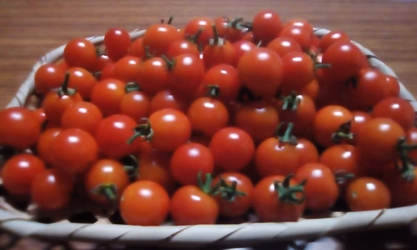 前年自然栽培(10年以上無肥料・栽培期間中農薬不使用の圃場)で育てたものから自家採種し、種から収穫まで自然栽培(有機JAS移行中2年目ビニールハウス)で作ったミニトマトです。