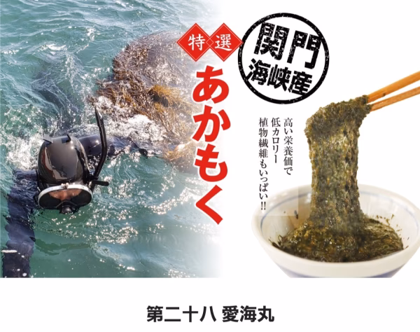 日本三大潮流にもなっている潮の流れが速い関門海峡で育ったあかもくは付着物が少なく海藻がとても綺麗です。また、私達漁師はあかもくを絶やさせないよう、潜ってあかもくの根を傷付けないように丁寧に漁をおこなっています。上げて来た後も良い物だけを選別しその日の内に加工しています。自信たっぷり自慢のあかもくです。