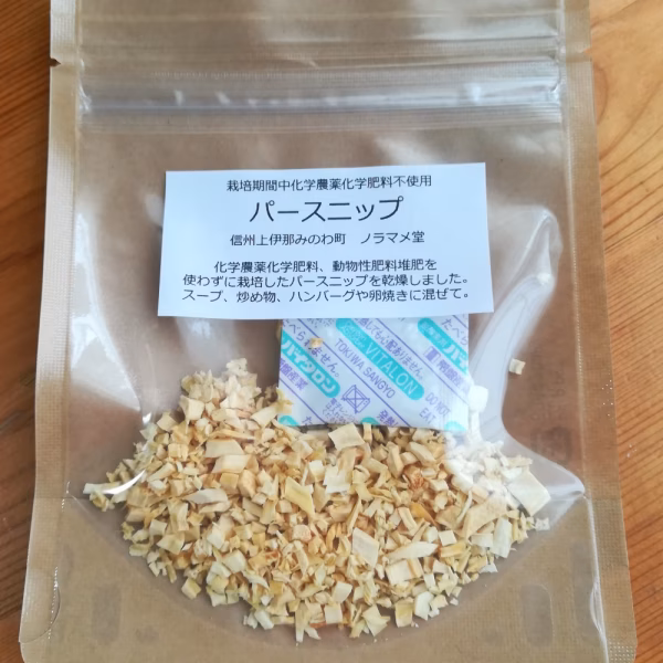 化学農薬、化学肥料、動物性の堆肥、肥料を使わずに栽培したパースニップを乾燥させました。