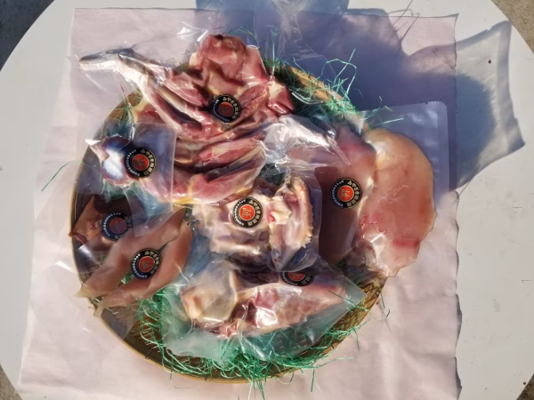 メスと比べると歯ごたえがしっかりしていて、サイズも大きくかなり食べ応えがあります。地鶏好きにはたまらない商品です❕モモの骨付きですので、見応え十分❕