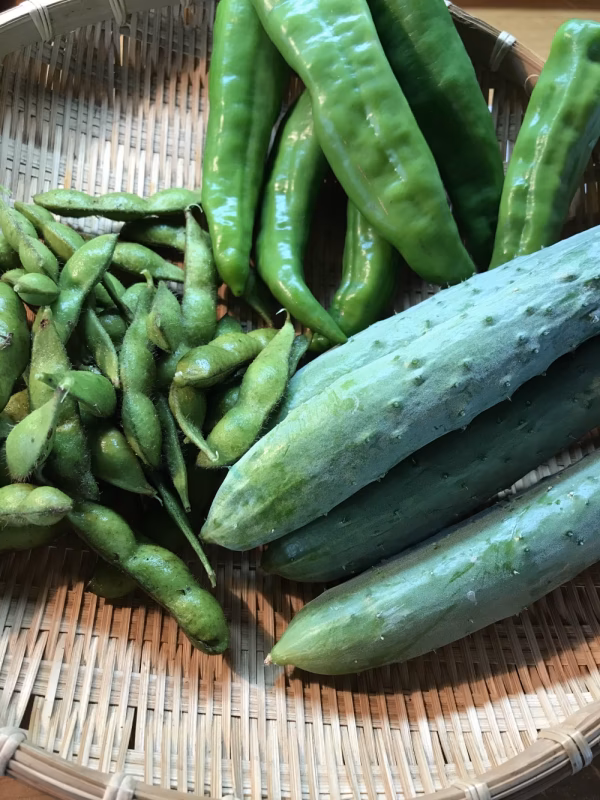 枝豆、万願寺唐辛子、キュウリのセットです。