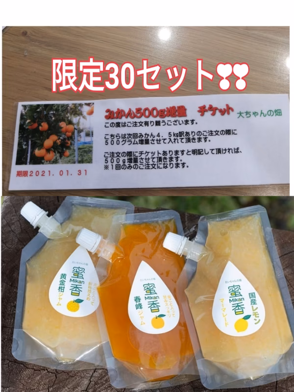 次回の、みかんのご予約 ご注文の方にみかんを500g増量させて頂きます。