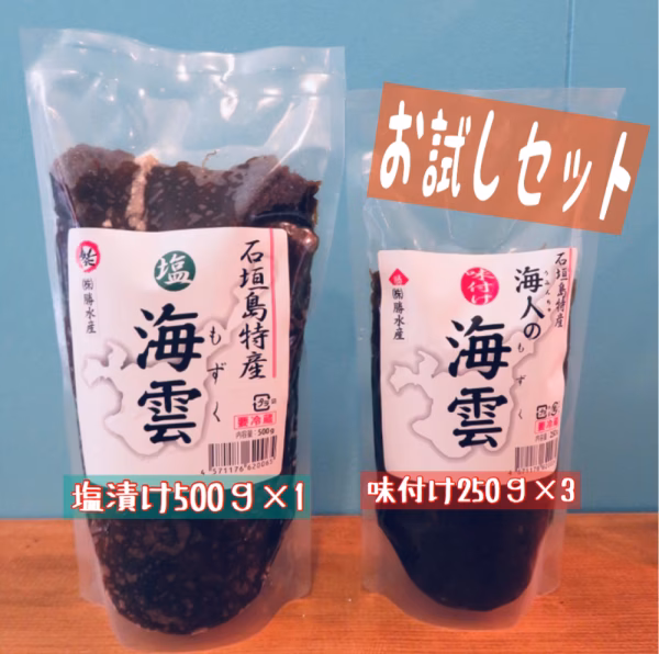 勝水産のもずくは、プリプリとした食感とフコイダンのたっぷりついた豊富な栄養素を含み、自然の太陽光で育った自慢のもずくです。