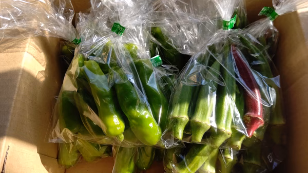 オクラはいぼ果、曲がりありの荒選別、獅子唐も曲がりや傷などがあります!