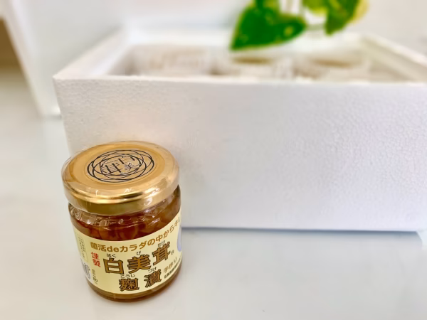 白いきくらげ「白美茸」を漬け込んで熟成させています。