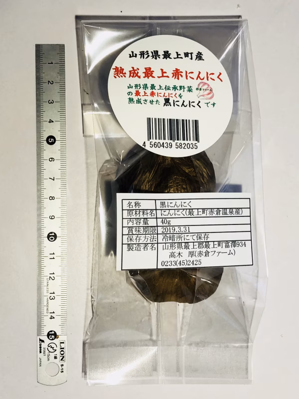 最上町赤倉温泉の赤倉ファーム産の最上赤にんにくを熟成した黒にんにくは、旨味・こくが勝り、酸味も少ない。うまみ成分のグルタミン酸などが多く含まれており、sーアリルシステインも多く生成されます。数年前に満点青空レストランで赤倉ファーム産の熟成最上赤にんにく(黒にんにく)が紹介され、大評判となっています。