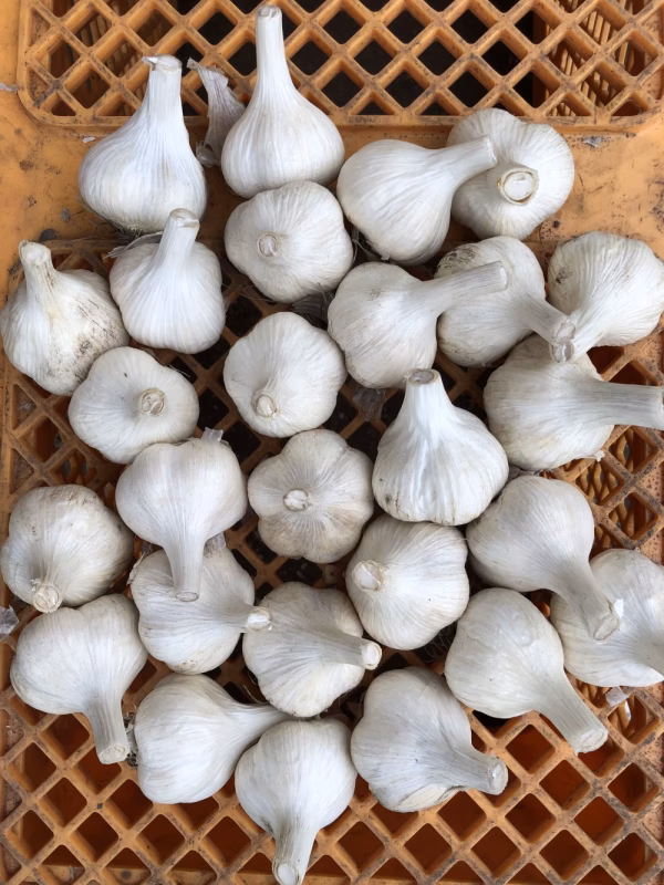 今年6月に収穫した青森県産にんにくです。小さいサイズですが、一粒一粒が大きめですので、丸揚げや醤油漬けにお使いいただけます。また、毎日のお料理での使い切りにも便利です。