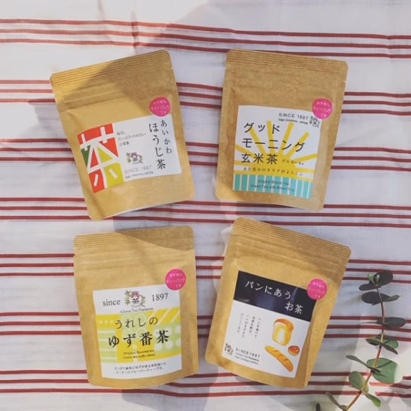 「あいかわほうじ茶」×2、「グッドモーニング玄米茶」×2、「ゆず番茶」×1、「パンにあうお茶」×1 の6袋がセットになっています。