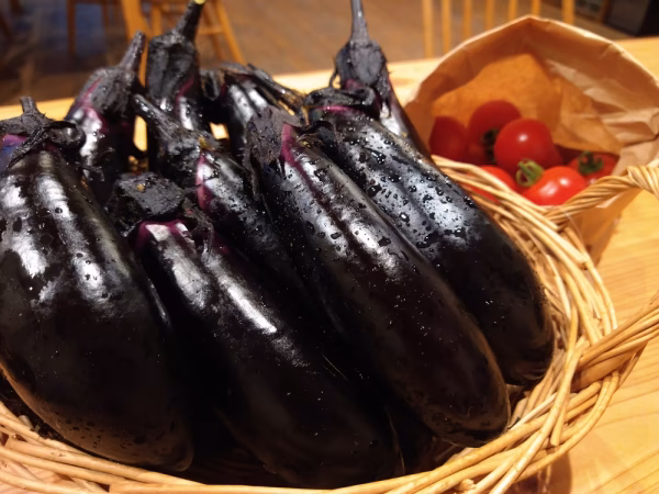 有機栽培茄子1kg約10本。有機栽培トマト(アイコ。フルティカ)500g