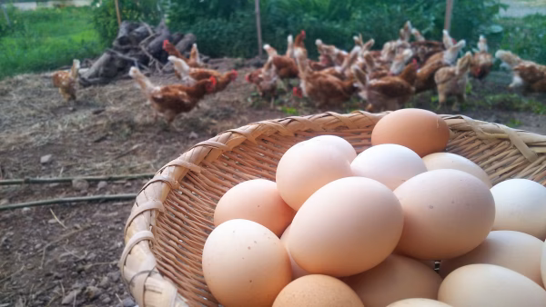 もうしょで夏バテ気味の鶏さん達ですががんばって卵を産んでいます。水分を多く摂る夏は白身が冬よりサラッとしています。最近はトマトを食べたりもしています。